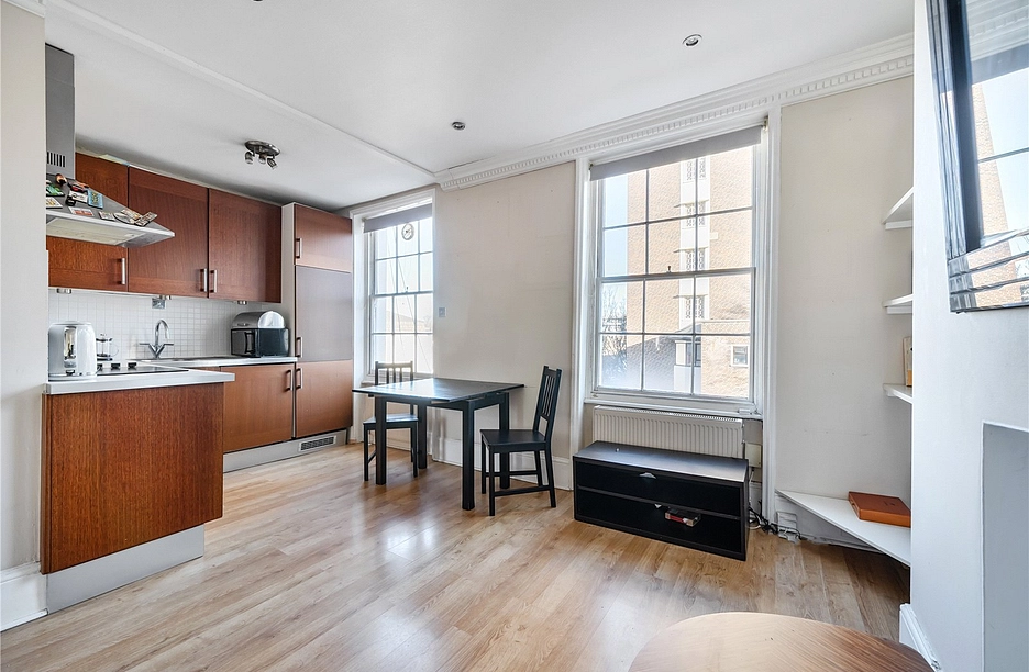 An elegant two-bedroom apartment boasting a period upper floor, offering a true taste of traditional British living.