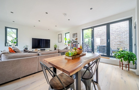 “We’ve loved living here — it’s so different from typical flats. The top-floor living space and terrace make it feel more like a house. Friends always comment on how spacious and light it is. It’s been perfect for us working from home, but we’re moving closer to family in Yorkshire now that we have a new baby. We hope the next owners enjoy it as much as we have.”