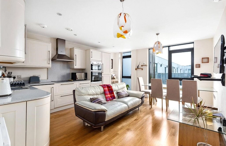 Situated in one of the most popular north London locations, this double bedroom apartment exists within a restored 1930s Art Deco department store called The Drapery.